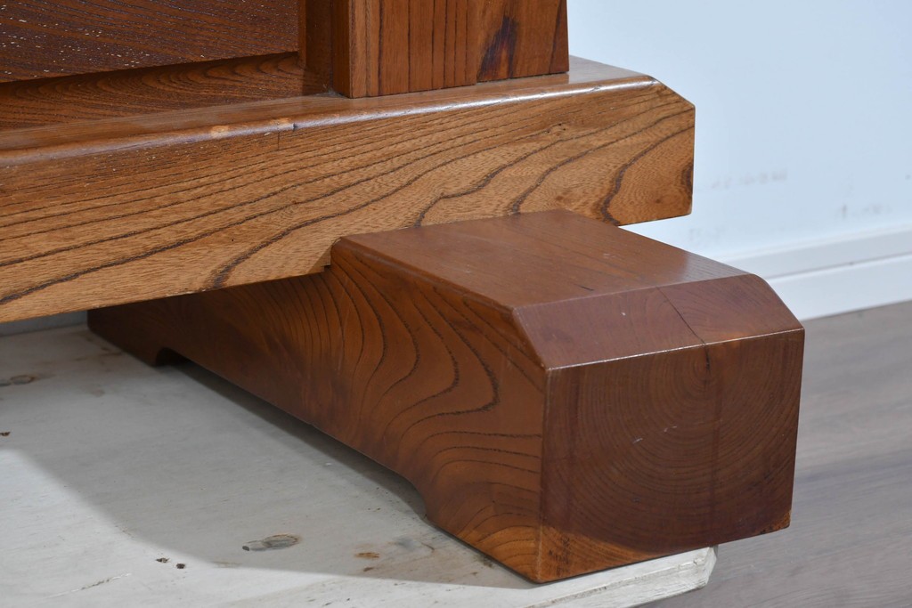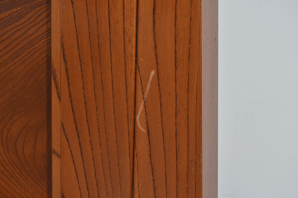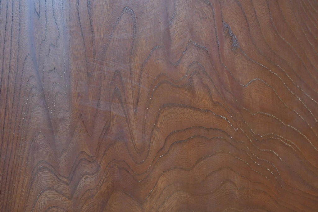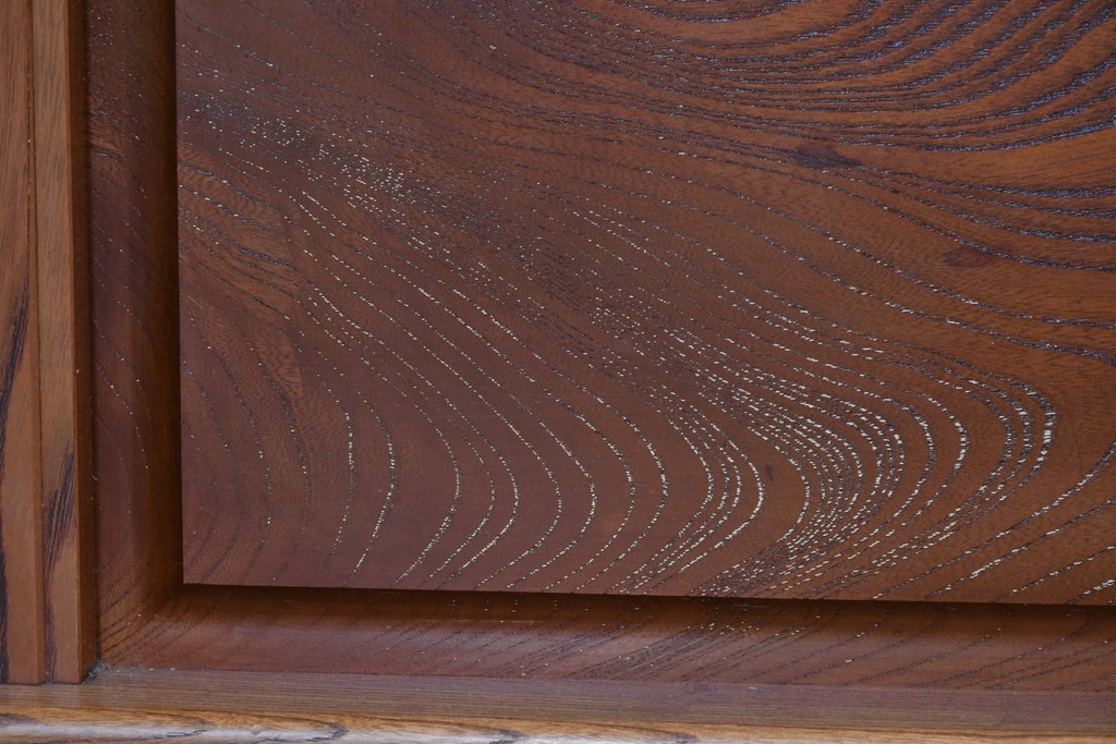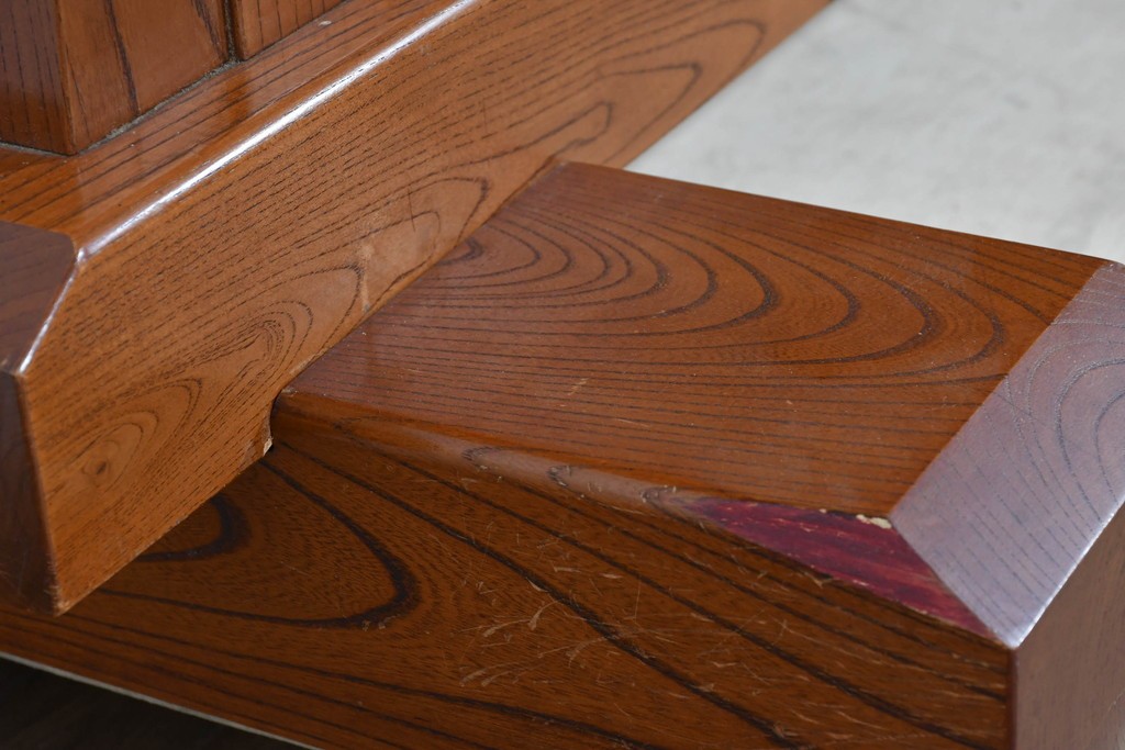 欅特有の力強い杢目が一枚板の迫力とともに際立ち、木肌の豊かな陰影が上質な存在感を与えます。