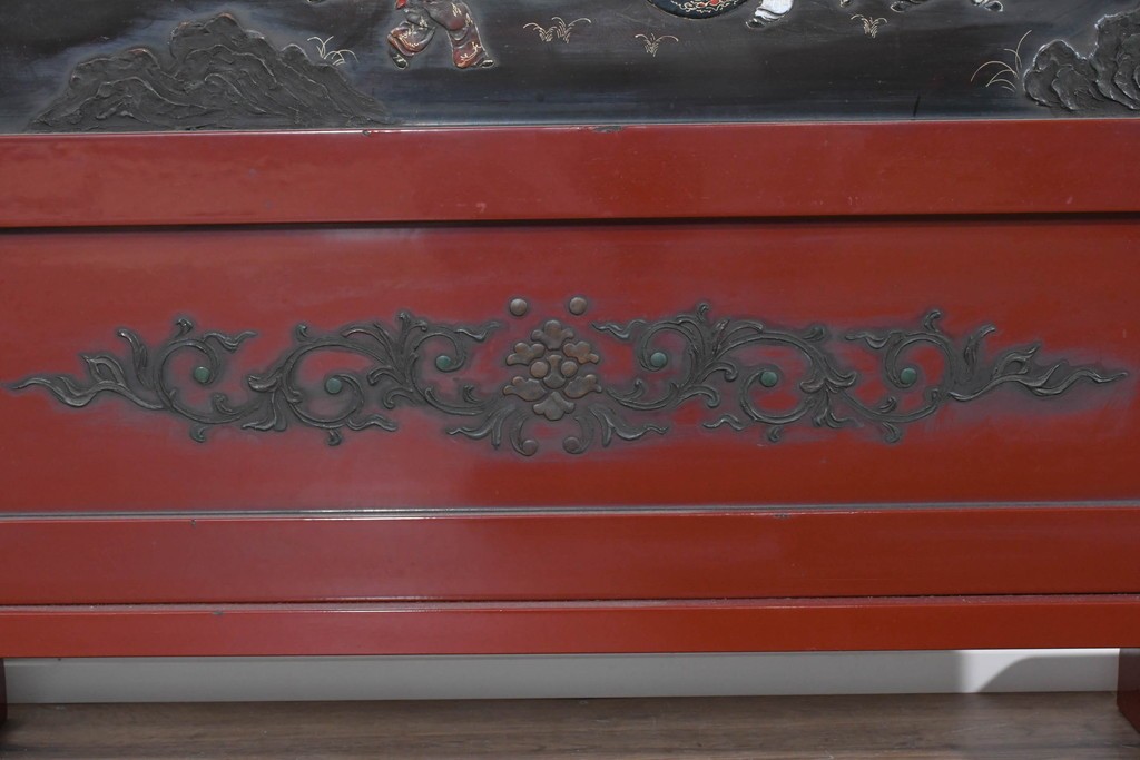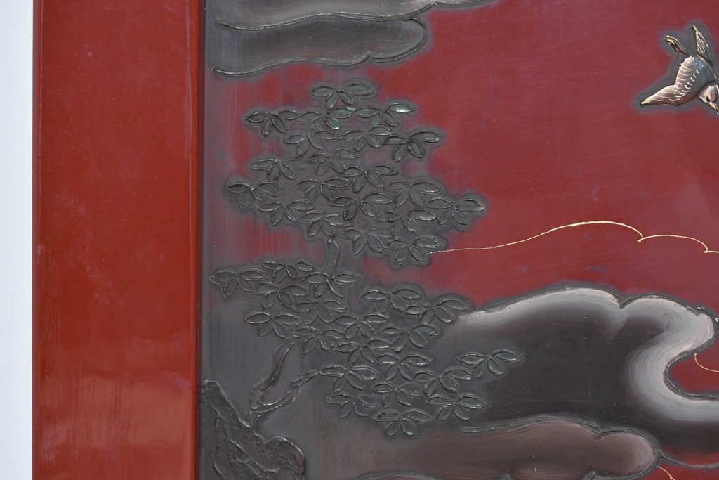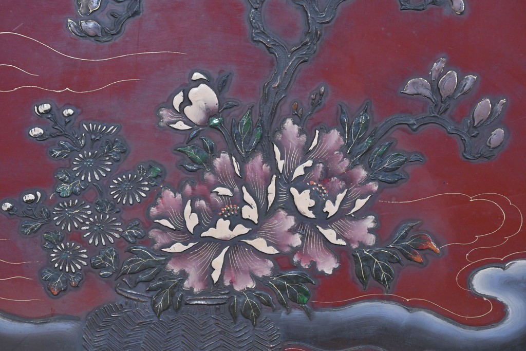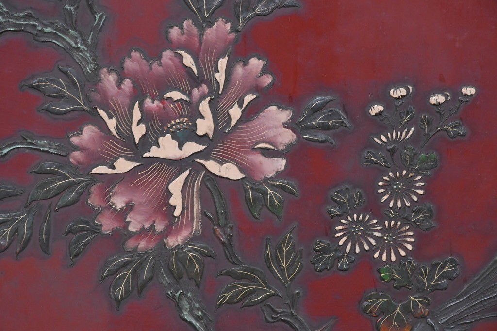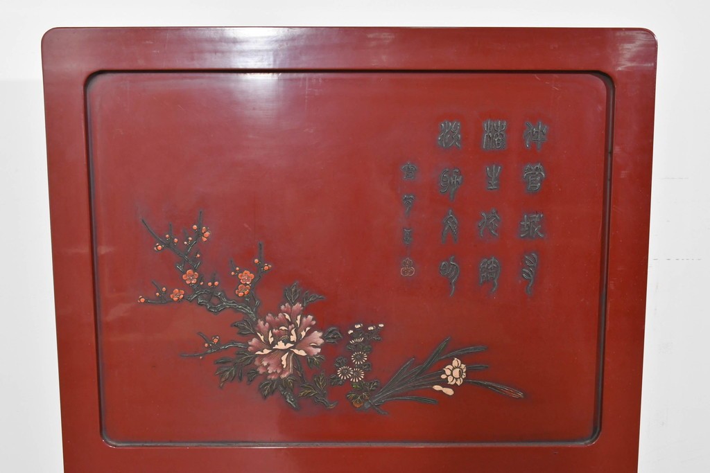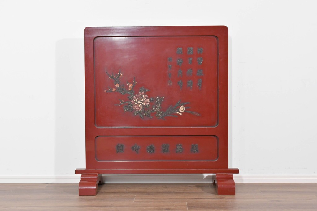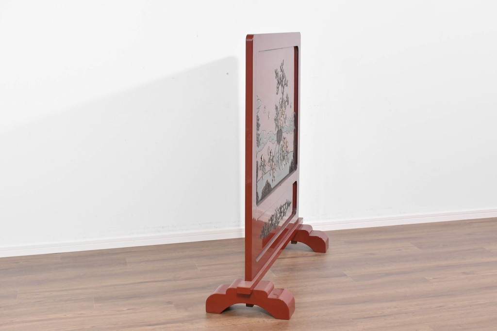 朱塗り漆の深い色調が目を引く、高級工芸品のアジアンヴィンテージ衝立です。