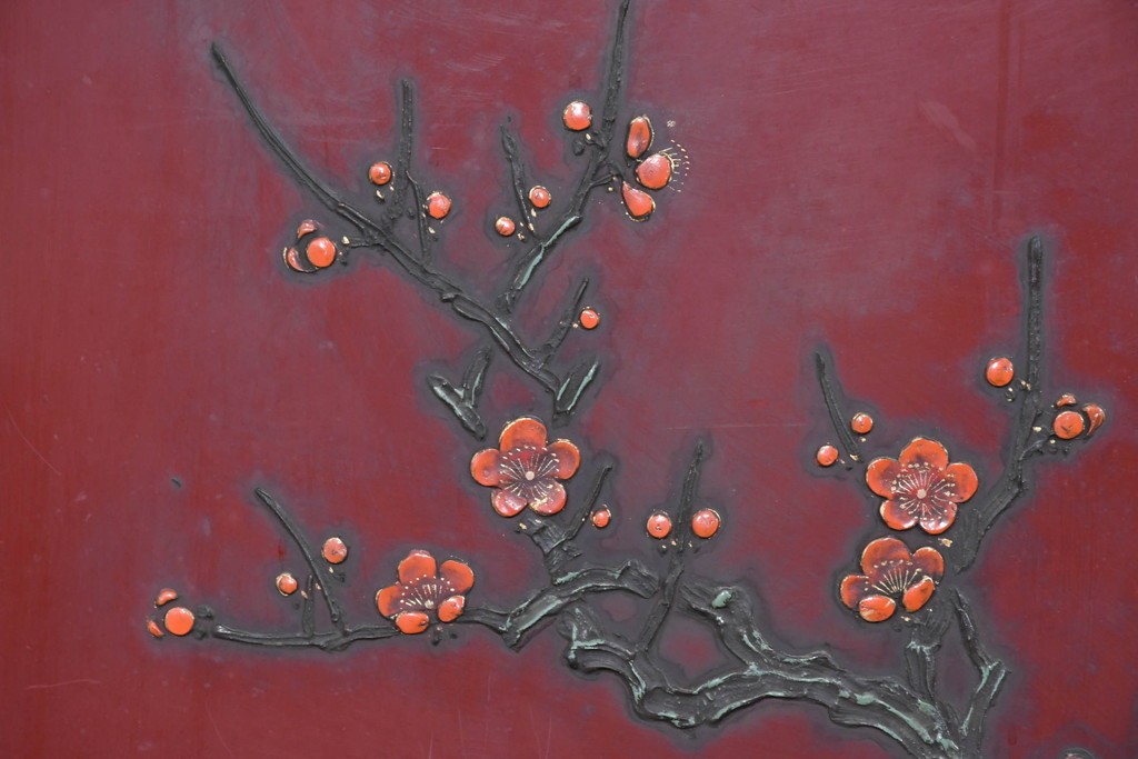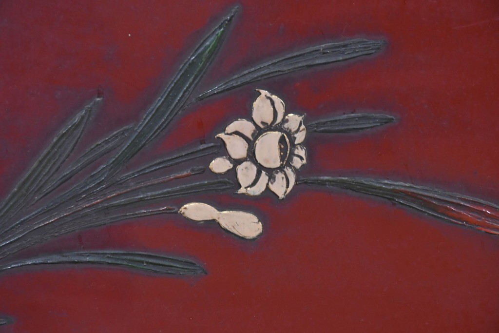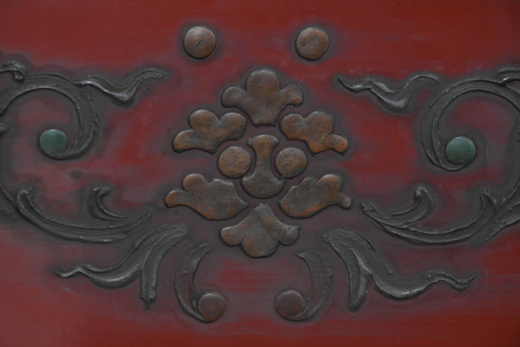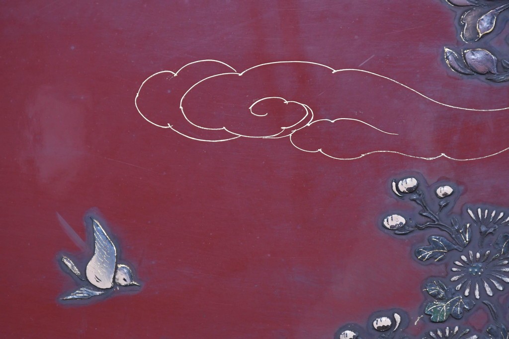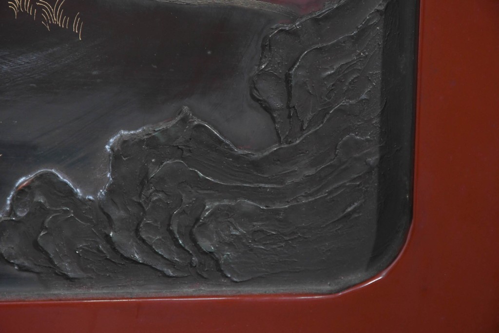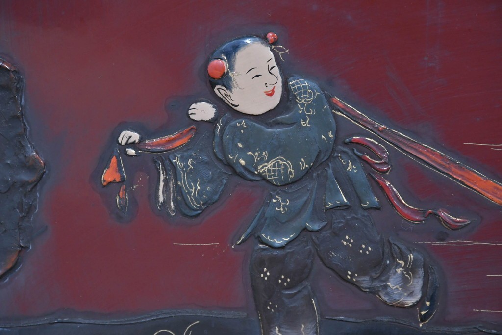朱塗り漆の深い色調が目を引く、高級工芸品のアジアンヴィンテージ衝立です。