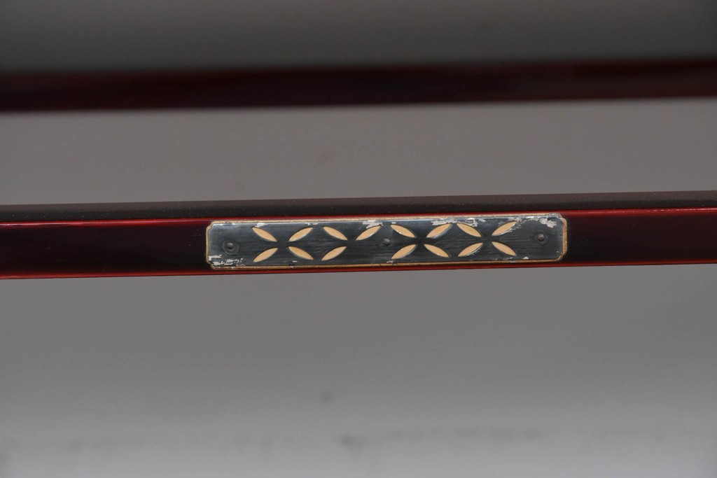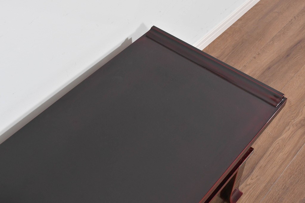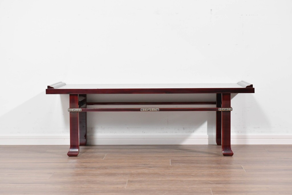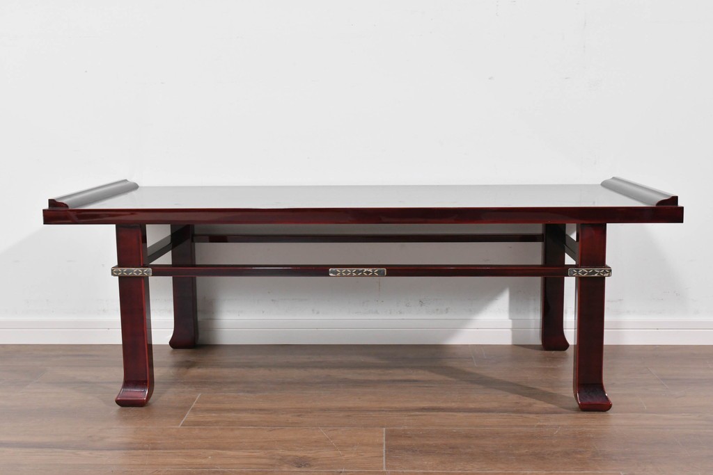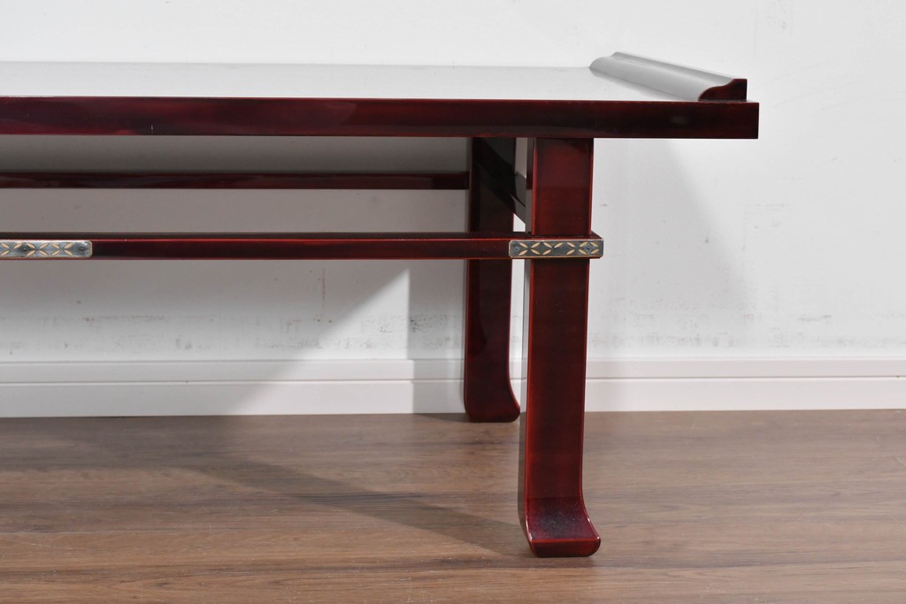 脚部や幕板には金具装飾が施され、落ち着いた漆色の中に控えめなアクセントが映えます。