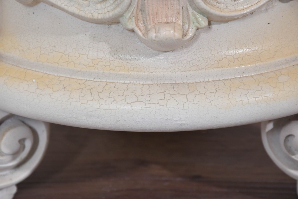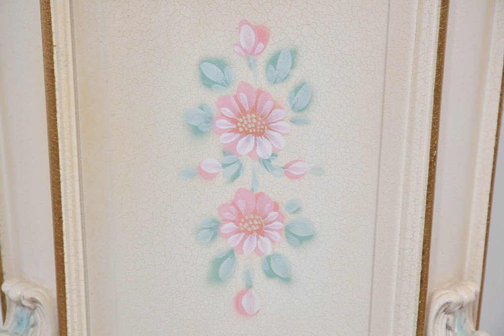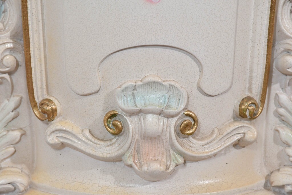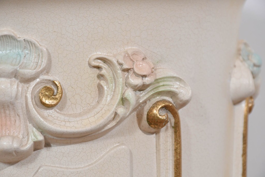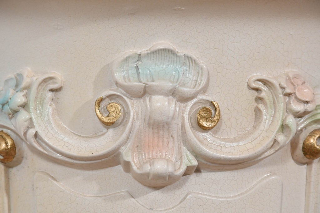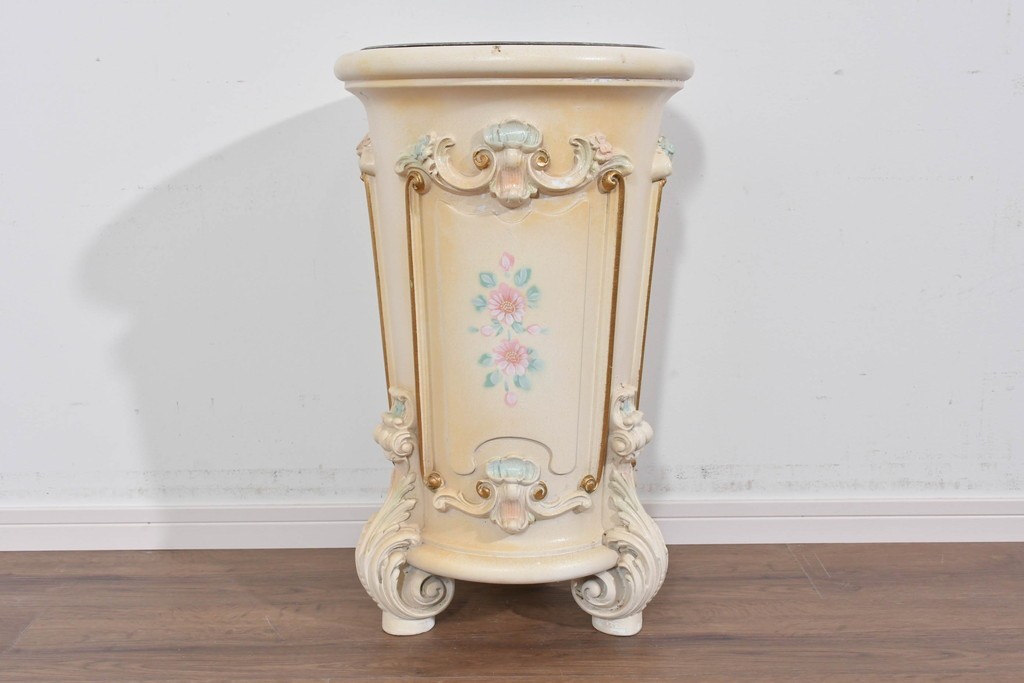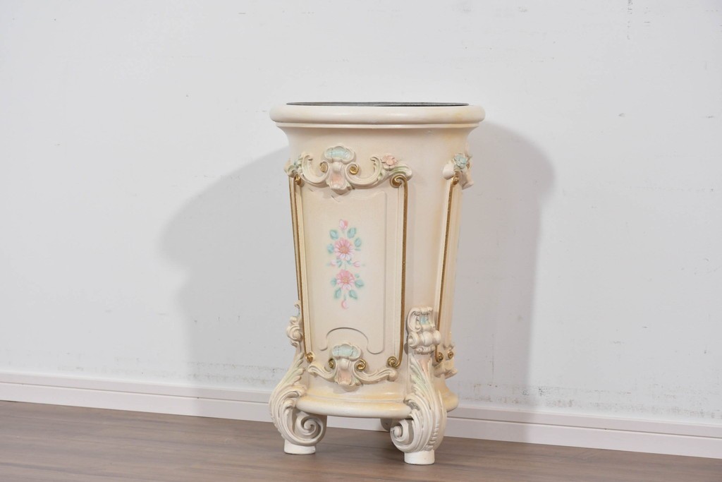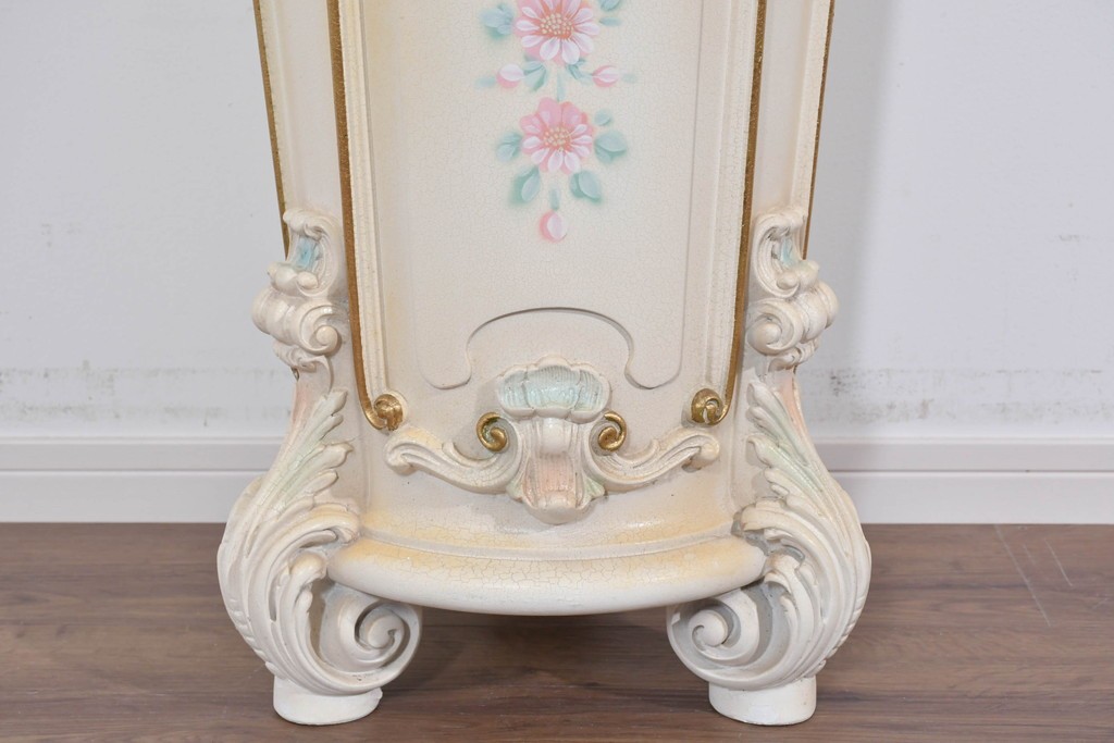 柔らかなアイボリーを基調に、パステル調の花レリーフや金色装飾が施され、ロココ調らしい優雅な雰囲気を漂わせます。