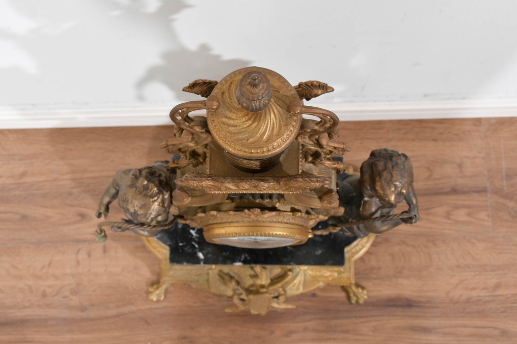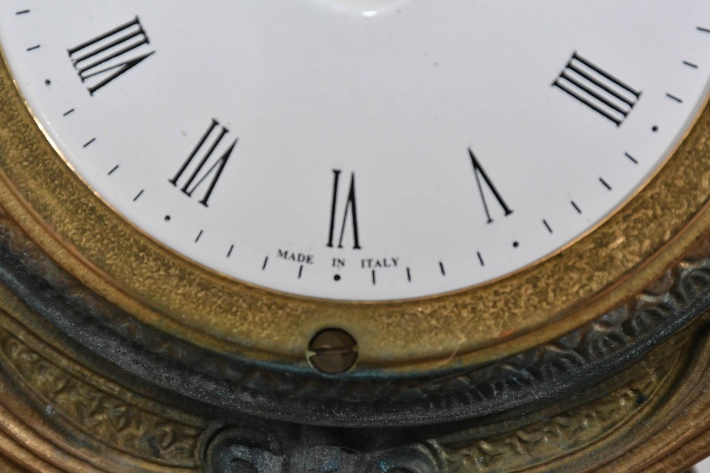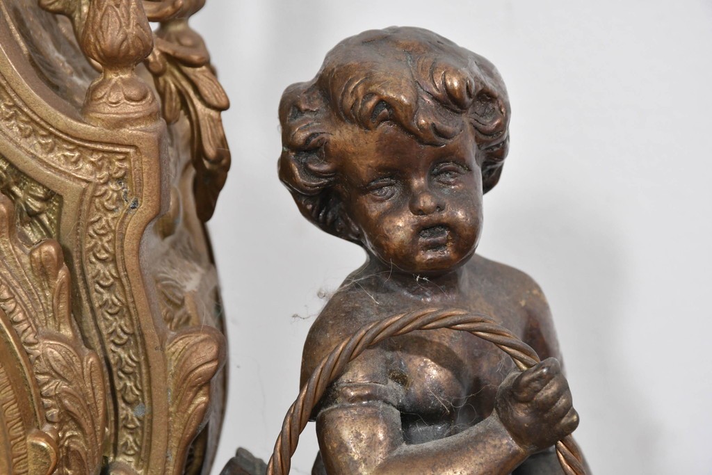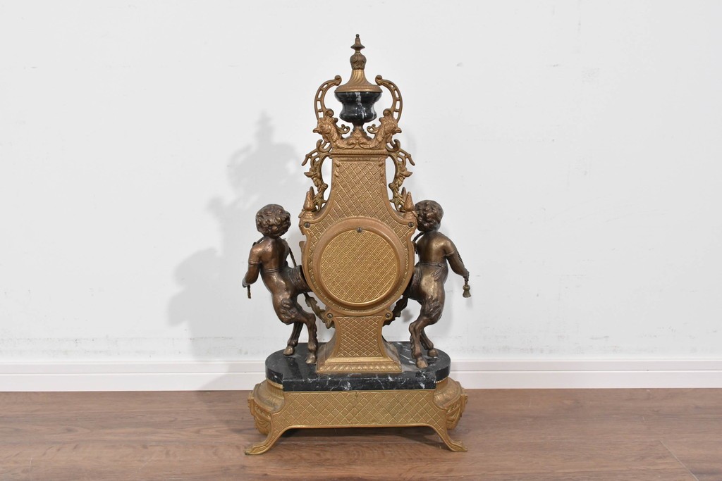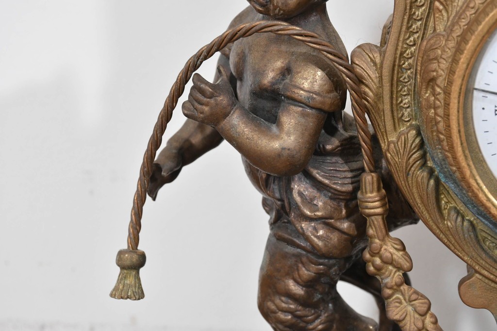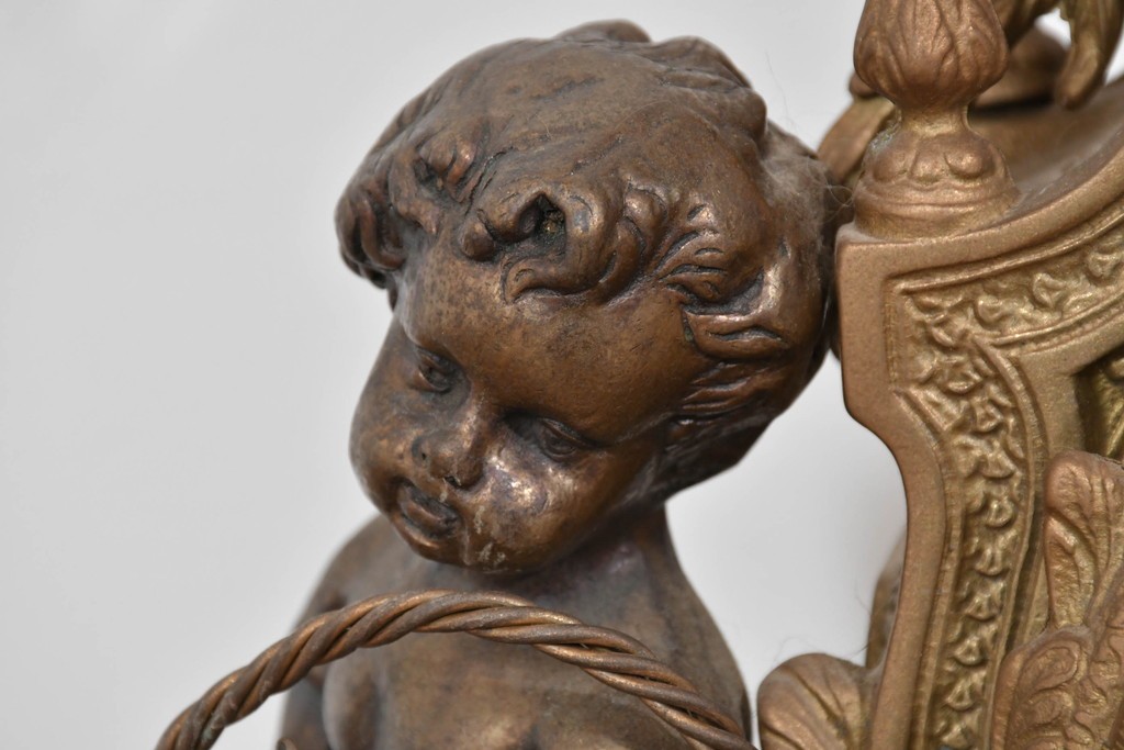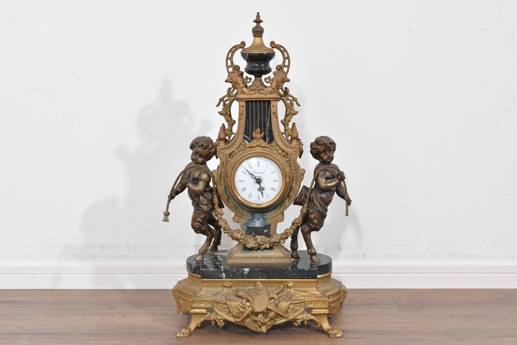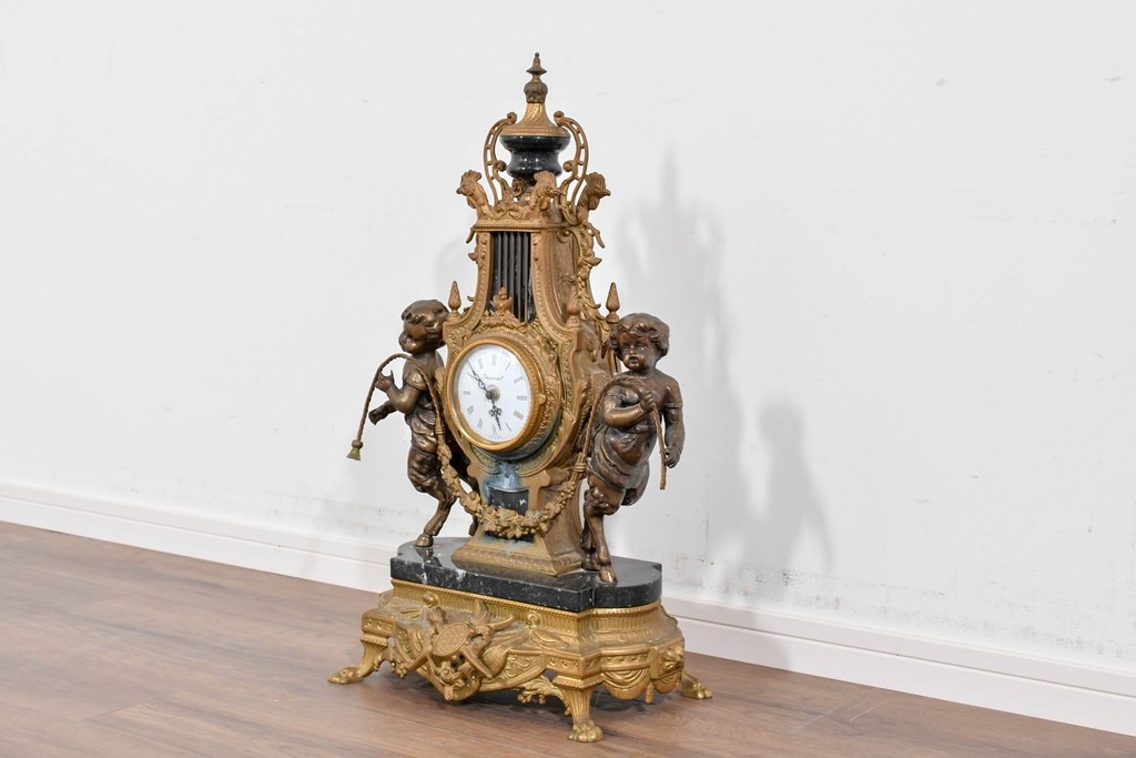 真鍮製の本体には、天使像や植物文様を立体的にあしらった装飾フレームが施され、クラシックな雰囲気を引き立てています。