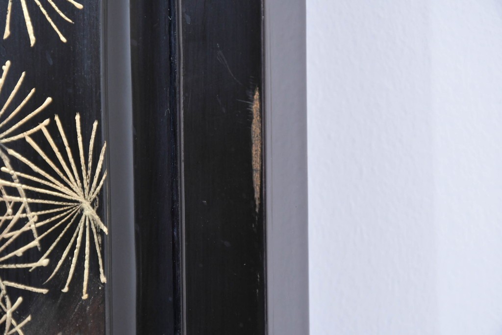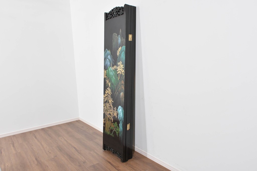 四枚折りの構造で、間仕切りとしてはもちろん、壁面を飾るディスプレイアイテムとしても楽しめる存在感のある一台です。