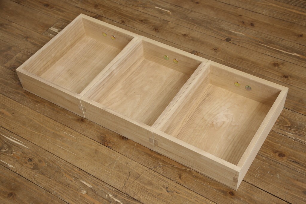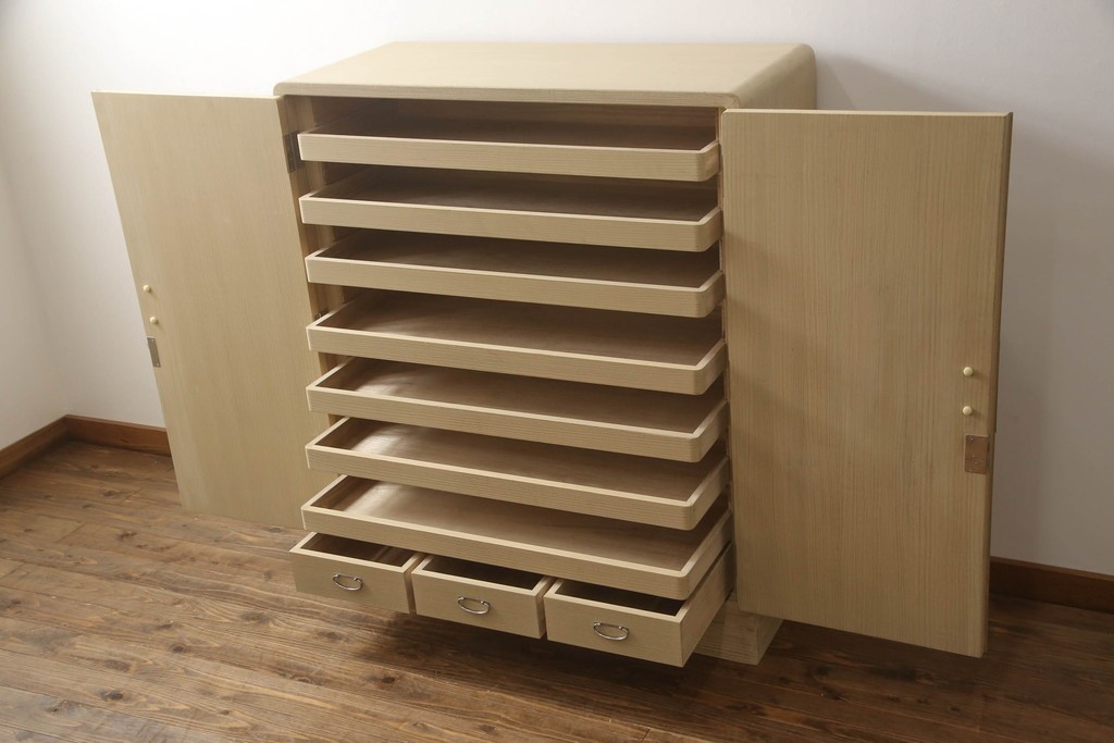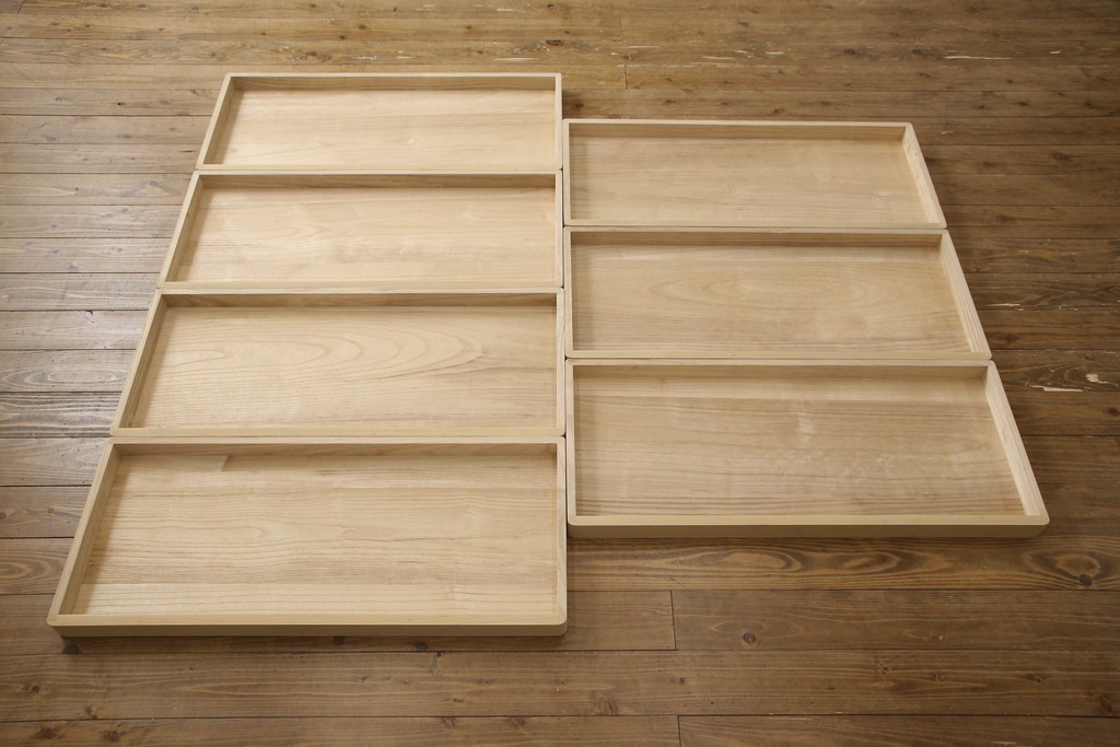 内部には浅めの衣装盆が整然と配置され、着物や衣類、小物類を分類して収納しやすい構造です。