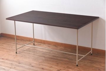 アンティークダイニングテーブルは、昭和期頃に作られたもの。木目や節、古い傷、シミなどが素敵な味わいとなっていて、シンプルなデザインですが雰囲気は抜群です。天板はクリア塗装で仕上げているので、毎日気兼ねなく水拭きでお手入れできるのもうれしいポイントですよ。