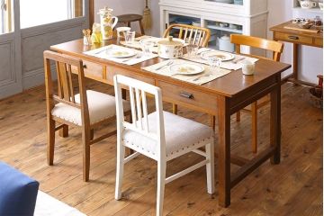 セットアンティークのダイニングテーブル・チェアのセット。手軽に統一感のあるコーディネートに