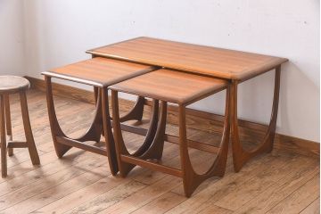 ネストテーブル入れ子状に収まる大小のテーブルから成るネストテーブル。サイドテーブルや飾り棚に便利