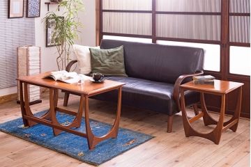 北欧アンティークのテーブルは、木の温かみが感じられるシンプルで美しい佇まいが魅力。ミニマルなデザインで、モダンな家にもすっきりと馴染みます。北欧のテーブルは、チーク材やローズウッド材、オーク材などの高級木材で作られたものが多く、美しい木目と高い耐久性が魅力です。また、ローテーブルやネストテーブルは、天板がタイルトップのものも豊富。北欧デザインらしいおしゃれなパターンが楽しめるうえ、水気に強いのでお手入れが一層楽になりますよ。