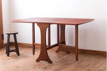 アンティークのエクステンションテーブルには、他にバタフライテーブルやゲートレッグテーブルがあります。バタフライテーブルは、別名ドロップリーフテーブルやフォールディングテーブルとも呼ばれ、折りたたみ式の天板を開いて天板を拡張できるのが特徴。2人掛けから4人掛けくらいの大きさに伸張できるものが多く、ドローリーフテーブルよりもコンパクトなサイズ感です。天板を半分だけ開いて使うこともできます。