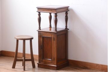 木製脚のアンティークテーブルは、特に挽物加工された洋風の脚が人気。木材を回転させながら切削し、丸みを加えた立体感のある形状に仕上げられています。デコラティブでエレガントな雰囲気たっぷりの佇まいです。