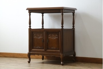 木製脚のアンティークテーブルは、特に挽物加工された洋風の脚が人気。木材を回転させながら切削し、丸みを加えた立体感のある形状に仕上げられています。デコラティブでエレガントな雰囲気たっぷりの佇まいです。