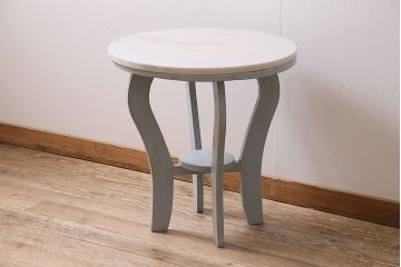 アンティークテーブルは、天板が丸型のラウンドテーブルも豊富です。こちらは角型よりも空間への収まりは良くありませんが、むしろテーブルの存在感が引き立つのが魅力。空間のアクセントになり、ダイニングならテーブルを主役にしたコーディネートが楽しめます。