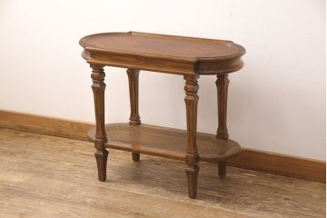木製脚のアンティークテーブルは、特に挽物加工された洋風の脚が人気。木材を回転させながら切削し、丸みを加えた立体感のある形状に仕上げられています。デコラティブでエレガントな雰囲気たっぷりの佇まいです。