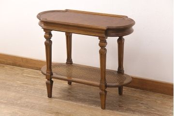 木製脚のアンティークテーブルは、特に挽物加工された洋風の脚が人気。木材を回転させながら切削し、丸みを加えた立体感のある形状に仕上げられています。デコラティブでエレガントな雰囲気たっぷりの佇まいです。