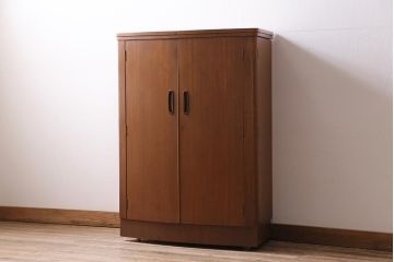 こちらは、和製アンティークのレトロな木製テーブルを取り入れたインテリア例。古家具らしい味わいが漂う温かなダイニングにコーディネートしました。ダイニングチェアやベンチ、食器棚などもアンティーク家具を使って、素朴でナチュラルな味わいを醸し出しています。