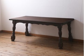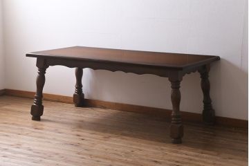 ダイニングテーブルアンティーク調デザインの現代物のテーブル。状態の良い中古品がお手頃な価格で手に入る!