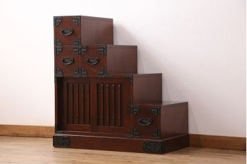 階段が箪笥になった階段箪笥タイプの和風家具・和家具は、その見栄えするデザインから和のデザインが気になる方にはあこがれの存在。こちらも関西で主に発展したアイテムで、限られた住居空間を生かす町人のアイディアが詰まっています。壁際に置くだけでなく空間の中心でパーテーション(間仕切り)感覚で使ってみるのも素敵ですよ。
