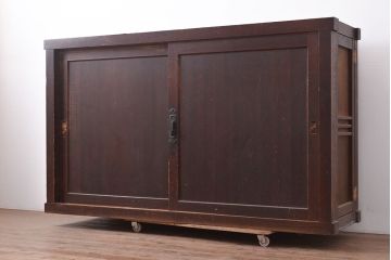 車輪が付いた車箪笥タイプの和風家具・和家具は転がして移動できると昔は重宝されてたアイテム。商品在庫や家財道具などを入れて活用していたそうです。車輪のおかげで高さが出る分、脚付きのようなモダンな雰囲気がするのが面白いところ。さらに金具も控えめなので現代的なお部屋にも馴染みやすく人気の高いアイテムです。