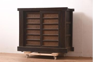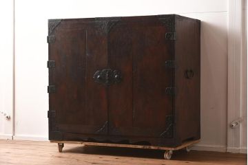車輪が付いた車箪笥タイプの和風家具・和家具は転がして移動できると昔は重宝されてたアイテム。商品在庫や家財道具などを入れて活用していたそうです。車輪のおかげで高さが出る分、脚付きのようなモダンな雰囲気がするのが面白いところ。さらに金具も控えめなので現代的なお部屋にも馴染みやすく人気の高いアイテムです。