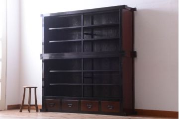 台所用家具であった水屋箪笥タイプの和風家具・和家具は、食器や食物を入れるための作りが特徴。滋賀や京都など関西で発展が著しく、現代でも関西水屋は上質な品として認知されています。立派な作りのものが多いのは、台所に豪華な水屋を置くことが富の象徴とされていたからだそう。堂々たる存在感は店舗什器にもおすすめです。
