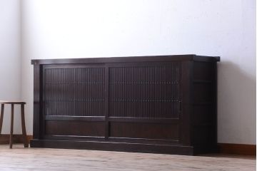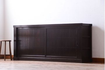 キッチンに取り入れる箪笥・和風家具・和家具には、食器類や食品類を入れることが多いと思います。この時まず考えておきたいのが中のものは隠せたほうがいいのか、それとも見せられたほうがいいのかということ。 中を隠したい場合は木製引き戸のついた和家具がまず候補に挙がってきます。この時使いやすいのがなんと言っても「水屋箪笥」。台所用に作られただけあって、キッチンのあれこれを快適に収納することができます。水屋箪笥は本来大型のものが多いですが、スペースが限られている場合は「水屋箪笥ローボード」が便利です。こちらは当店で水屋箪笥をコンパクトにリメイクしたお品。高さが低い分、圧迫感が減りキッチンを広く見せてくれる効果が期待できますよ。