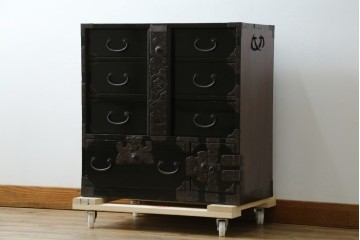 車輪がついている箪笥。豪華な金具が付いたものも多い。