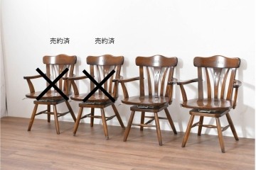アーム付きのアンティークダイニングチェアだと、天板とちょうど同じくらいの高さだった、ということもあります。そうなるとテーブルの下にしまい込めない分、使わない時でもスペースを取ることになりますので、お部屋の広さや生活動線を考えながら選ぶようにしてくださいね。