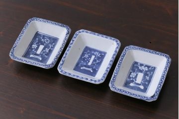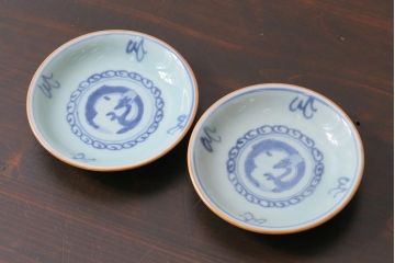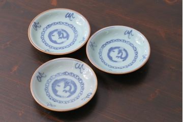 また、印判皿は染付皿と同じく、伝統的な文様が描かれていますが、職人が丁寧に絵付けした器と比べると、より色や濃さが均一で味気なく感じるかもしれません。ですが、素朴で親しみを感じるレトロな絵柄や、転写もの特有の擦れやズレなどは、印判皿ならではの味わい。希少性が低いことがから価格がお手頃なこともあって、日常使いのちょっとしたアンティーク和食器がほしい方から人気を集めています。
