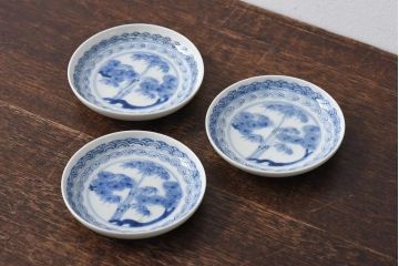 縁起物の文様の王道である松竹梅。松は不老長寿、竹は成長、梅は強さを表すと言われ、それぞれを単体で描いた器もある。