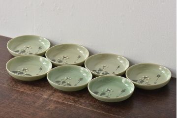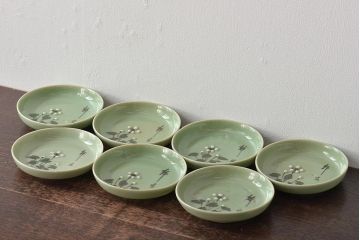 アンティーク和食器当店では直径約9〜12cm(3〜4寸)のお皿を小皿として、より小さい約6cm(2寸)サイズを豆皿として販売中。小皿はちょっとした取り皿にぴったりなサイズ。豆皿は箸休めや調味料入れに便利!