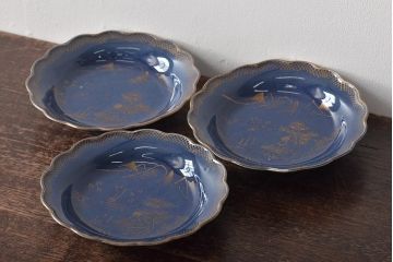 古九谷のアンティーク和食器は、緑や黄色、紫をベースに、青や赤による上絵付をした「青手(青九谷)」「五彩手」が特に有名。インパクトのある深い色彩と写実的な絵柄で、骨董品として高い人気を誇っています。