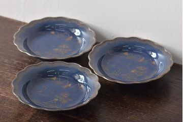 また、印判皿は染付皿と同じく、伝統的な文様が描かれていますが、職人が丁寧に絵付けした器と比べると、より色や濃さが均一で味気なく感じるかもしれません。ですが、素朴で親しみを感じるレトロな絵柄や、転写もの特有の擦れやズレなどは、印判皿ならではの味わい。希少性が低いことがから価格がお手頃なこともあって、日常使いのちょっとしたアンティーク和食器がほしい方から人気を集めています。