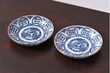 また、印判皿は染付皿と同じく、伝統的な文様が描かれていますが、職人が丁寧に絵付けした器と比べると、より色や濃さが均一で味気なく感じるかもしれません。ですが、素朴で親しみを感じるレトロな絵柄や、転写もの特有の擦れやズレなどは、印判皿ならではの味わい。希少性が低いことがから価格がお手頃なこともあって、日常使いのちょっとしたアンティーク和食器がほしい方から人気を集めています。