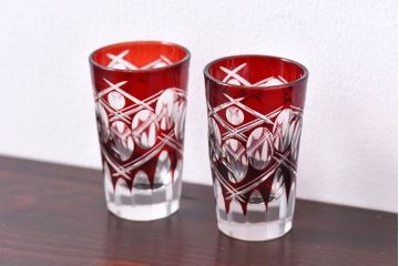 ガラス製のアンティーク和食器は、光が透けるとさらに美しく趣深く見えるのが特徴。そのため、こんな風にガラスケースに入れて、観賞用としてコレクションするのも人気なんです。アンティークガラスならではの揺らぎや繊細な色合い、工芸細工などが楽しめて、観ていて飽きない高級感のあるインテリアになりますよ。