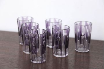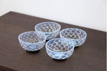 ガラス製のアンティーク和食器は、光が透けるとさらに美しく趣深く見えるのが特徴。そのため、こんな風にガラスケースに入れて、観賞用としてコレクションするのも人気なんです。アンティークガラスならではの揺らぎや繊細な色合い、工芸細工などが楽しめて、観ていて飽きない高級感のあるインテリアになりますよ。