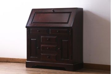 ビューロー(簿記机)収納とデスクが一体となったライティングビューロー。扉を開くとデスク天板に早変わり、扉を閉じればすっきりと片付くのが魅力!リビングなどに机を置きたい方におすすめ。