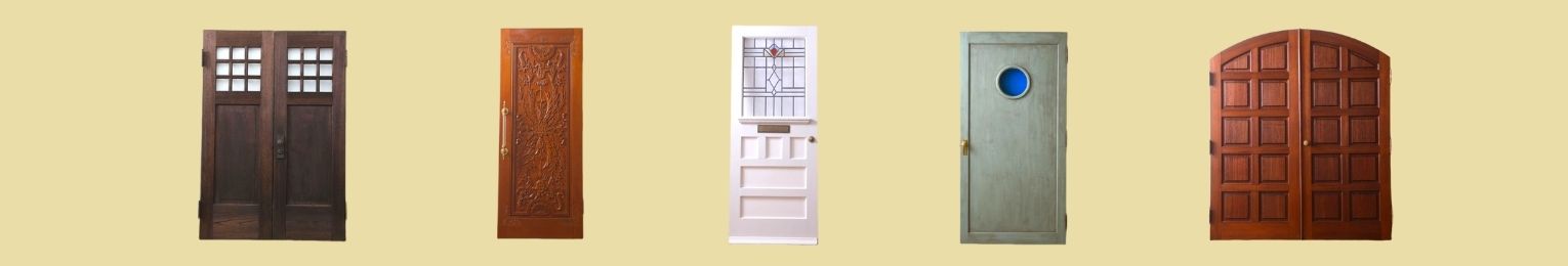 当店ではアンティーク・ヴィンテージの年代ものを中心に、様々なサイズ・デザインの玄関ドア・玄関戸を取り揃えています。リペアはもちろん、カスタムの範囲は塗装・取っ手・ガラス・サイズ・解放方向まで対応可能です。
