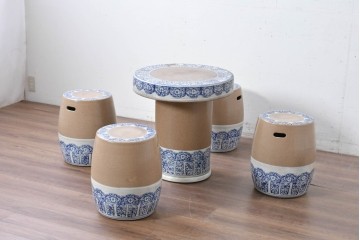 カフェテーブルレトロなタイルの天板がおしゃれなカフェテーブル