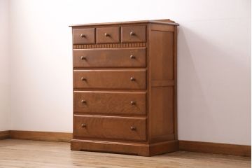 チェスト・引き出し明るい木色と素朴なカントリーデザインが愛らしいアンティークチェスト・引き出し