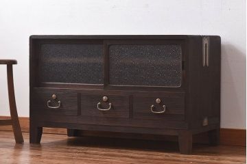 飾り気のない実直な形の小引き出しは、部屋をきちんとした印象にしてくれます。経年して渋みを増した木味も和室によく似合いますね!目線の低い和室だからこそ、コンパクトな小引き出しを床に置いてもしっくりと馴染みます。小引き出しの上のスペースをうまく生かして、植物や小物を飾ればよりインテリアとして趣深いものになりますよ!