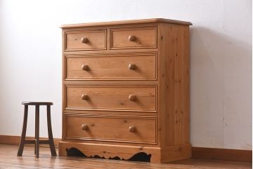 チェスト・引き出し明るい木色と素朴なカントリーデザインが愛らしいアンティークチェスト・引き出し