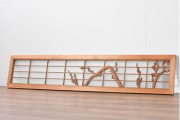 組子建具板戸やガラス戸、障子戸、欄間などの一部に組子細工が入ったアンティーク建具。麻の葉や胡麻、菱など伝統的な美しい文様が楽しめる。間仕切り建具におすすめ。