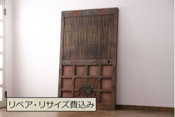 蔵戸かつて蔵の扉として使われていたアンティーク蔵戸。立派な鉄金具や錠前などが付けられ、堅牢で迫力のあるデザインが魅力!頑丈な作りで和風の玄関扉におすすめ。