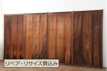 板戸・帯戸シンプルな板張りのアンティーク建具。帯戸は板戸の中央に帯が入ったもの。美しい木目や古い味わいが楽しめる。空間を完全に遮りたい場所におすすめ。