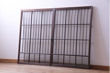 舞良戸主に横方向に細い桟が入った板戸のこと。玄関や雨戸、トイレ扉、押入れなど室内外で使われていたアンティーク建具で、軽いのに頑丈!古民家のようなレトロさが漂う。