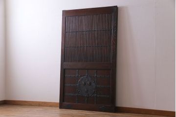 蔵戸かつて蔵の扉として使われていたアンティーク蔵戸。立派な鉄金具や錠前などが付けられ、堅牢で迫力のあるデザインが魅力!頑丈な作りで和風の玄関扉におすすめ。