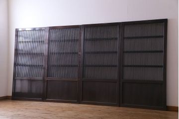 舞良戸主に横方向に細い桟が入った板戸のこと。玄関や雨戸、トイレ扉、押入れなど室内外で使われていたアンティーク建具で、軽いのに頑丈!古民家のようなレトロさが漂う。