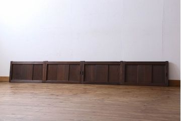 板戸・帯戸シンプルな板張りのアンティーク建具。帯戸は板戸の中央に帯が入ったもの。美しい木目や古い味わいが楽しめる。空間を完全に遮りたい場所におすすめ。