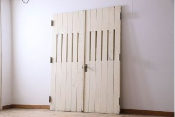 舞良戸主に横方向に細い桟が入った板戸のこと。玄関や雨戸、トイレ扉、押入れなど室内外で使われていたアンティーク建具で、軽いのに頑丈!古民家のようなレトロさが漂う。