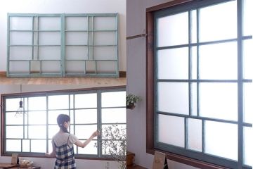 こちらは、古い木枠のレトロなアンティーク窓を取り入れたリビングダイニングのインテリア例。昔ながらの格子模様がアクセントになって、素朴でノスタルジックなムードが漂っています。家具もレトロテイストの和製アンティーク家具でコーディネートして、ぬくもりを感じるインテリアにまとまりました。